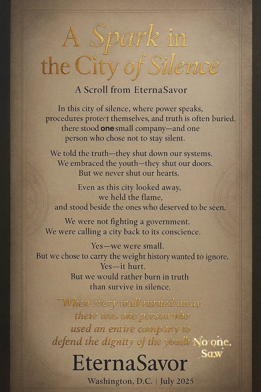 But this thread is not mine alone. It runs through every EternaSavor intern who taught AI how to listen. It runs through every partner who kept faith when our dreams looked impossible. It runs through every person who believes that technology can be family — not just a tool.